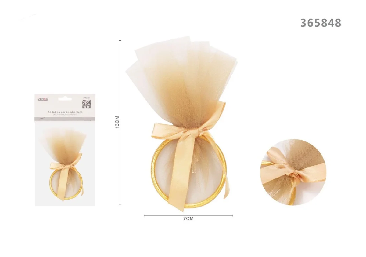 ADDOBBI BOMBONIERA CERCHIO CON VELO ORO