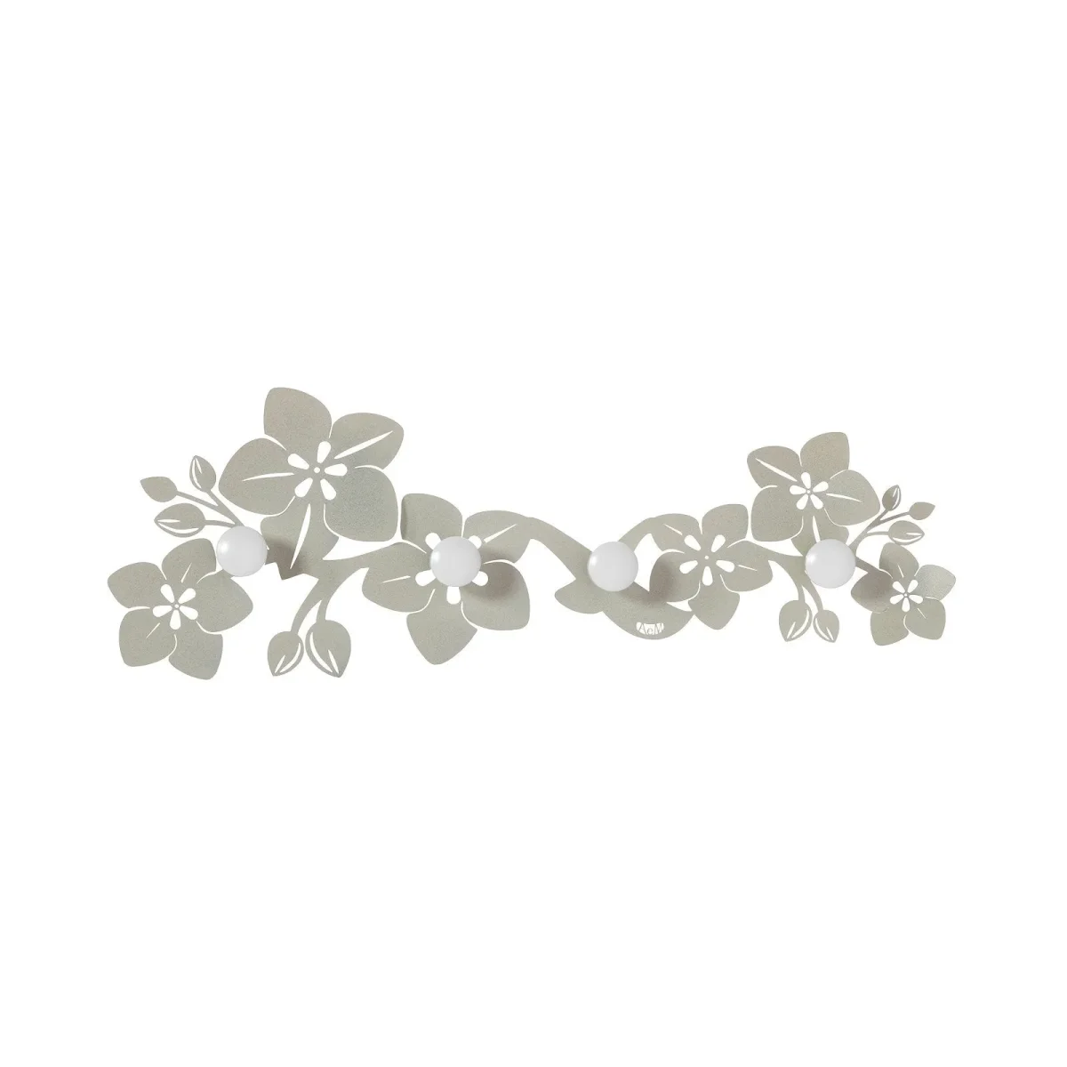 Design Distintivo: Sviluppato in senso orizzontale, l’appendiabiti di design è composto da quattro pomelli equidistanti, disposti strategicamente per la massima praticità. Uno dei ganci è posizionato al centro di uno dei delicati fiori di loto rappresentati, aggiungendo un tocco di grazia e bellezza al design complessivo.