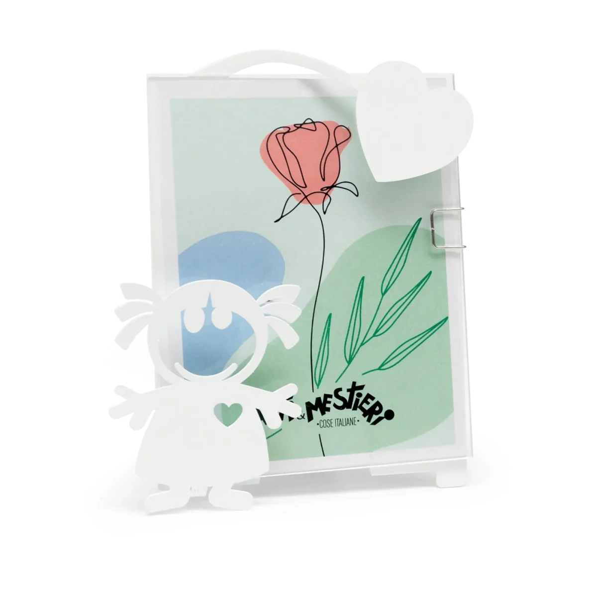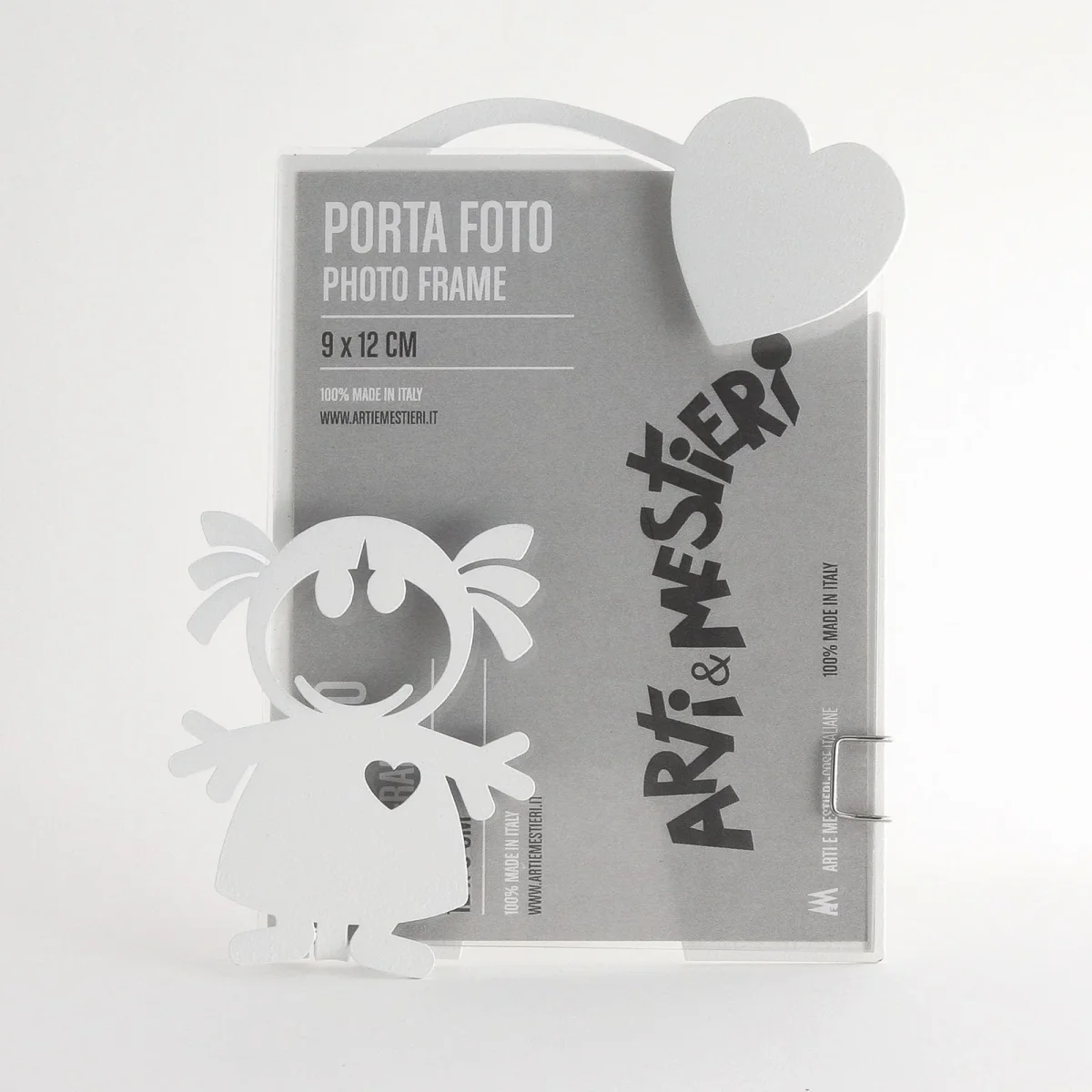 - Caratteristiche: Piccolo portafoto con sagoma di ragazza e cuore Perfetto come complemento d’arredo o bomboniera, con confezione venduta separatamente