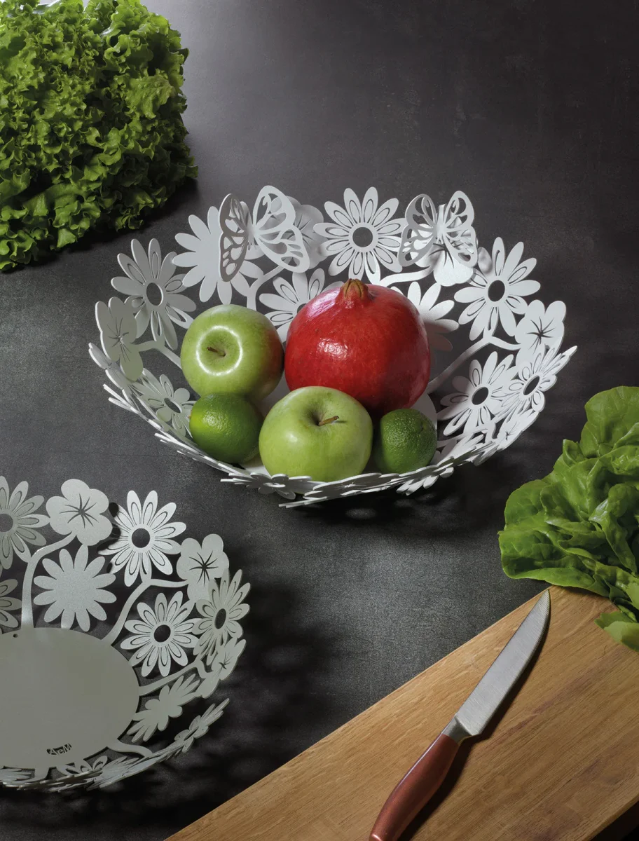 - Caratteristiche: Centrotavola grande, resistente e disponibile anche in una versione più piccola, raffigurante margherite e due farfalle