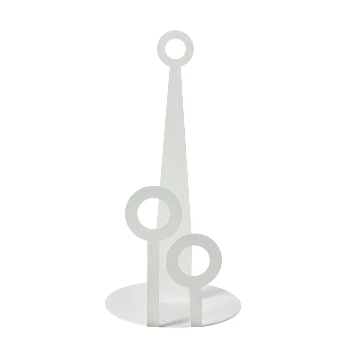 - Caratteristiche: I cerchi di diverse dimensioni, posti su livelli differenti, evocano l’immagine di bollicine in movimento, creando un effetto visivo affascinante e leggero. In questo caso il prodotto presenta due “bollicine”, poste centralmente a sostegno del rotolo, una più alta ed una più bassa.
