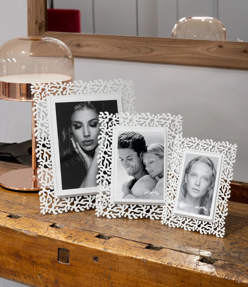 Il portafoto di design Corallo Maxi è un complemento d’arredo dal fascino naturale, ispirato alla bellezza del mare. Il suo design si distingue per la cornice decorata, che richiama le ramificazioni del corallo marino, creando un effetto visivo suggestivo. Grazie a questa particolarità, si adatta perfettamente a diversi stili di arredamento, ma trova la sua massima espressione negli ambienti marittimi. Con le sue dimensioni di 29,3×34 cm di altezza, può accogliere fotografie in formato 20×25 cm, mettendo in risalto i ricordi più preziosi con un tocco di originalità. Per chi desidera creare un’armonia visiva diversa, è disponibile anche nella versione grande e piccola.