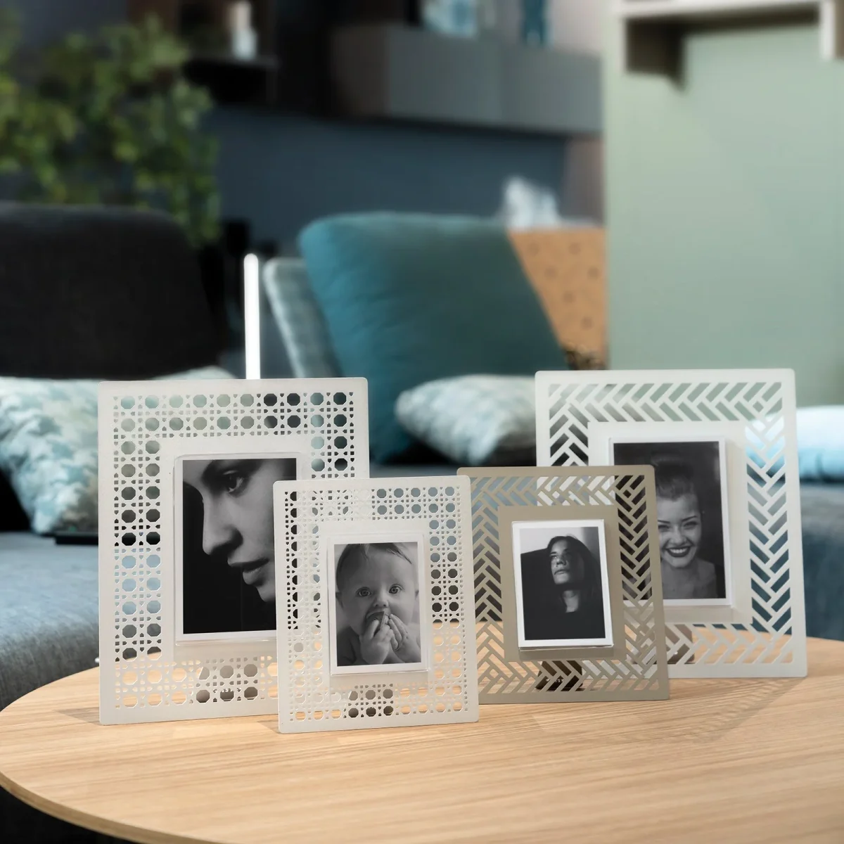 - Caratteristiche: Questo portafoto, che riprende il design dell’orologio Nudo con l’interccio Vienna, ha uno stile ordinato ed elegante. Questo motivo, creato attraverso le zone traforate, non solo conferisce un aspetto ordinato e armonioso, ma lo rende anche estremamente versatile e adattabile a vari tipi di ambienti. Disponibile anche una versione più grande.