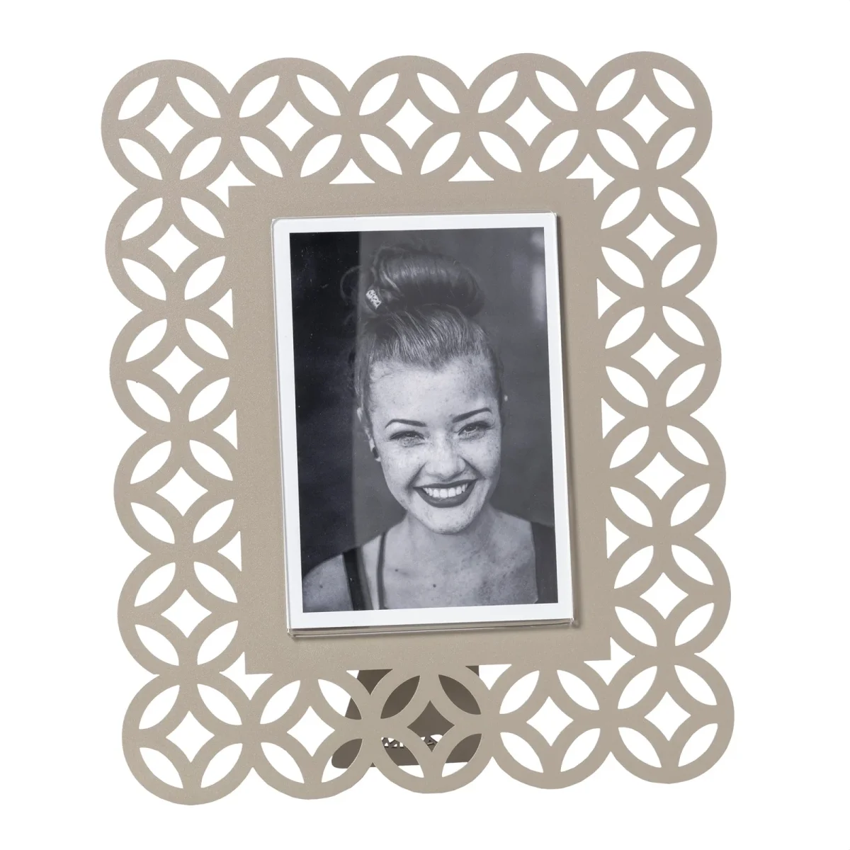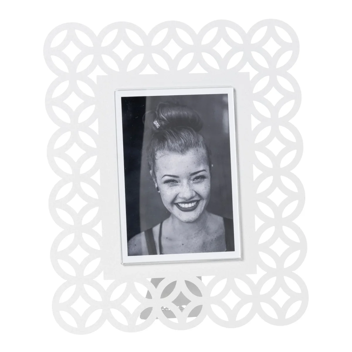 - Caratteristiche: Il portafoto Zen grande presenta un design formato da molteplici cerchi traforati dove al loro interno si sviluppano delle forme geometriche. Disponibile anche in una versione più piccola.