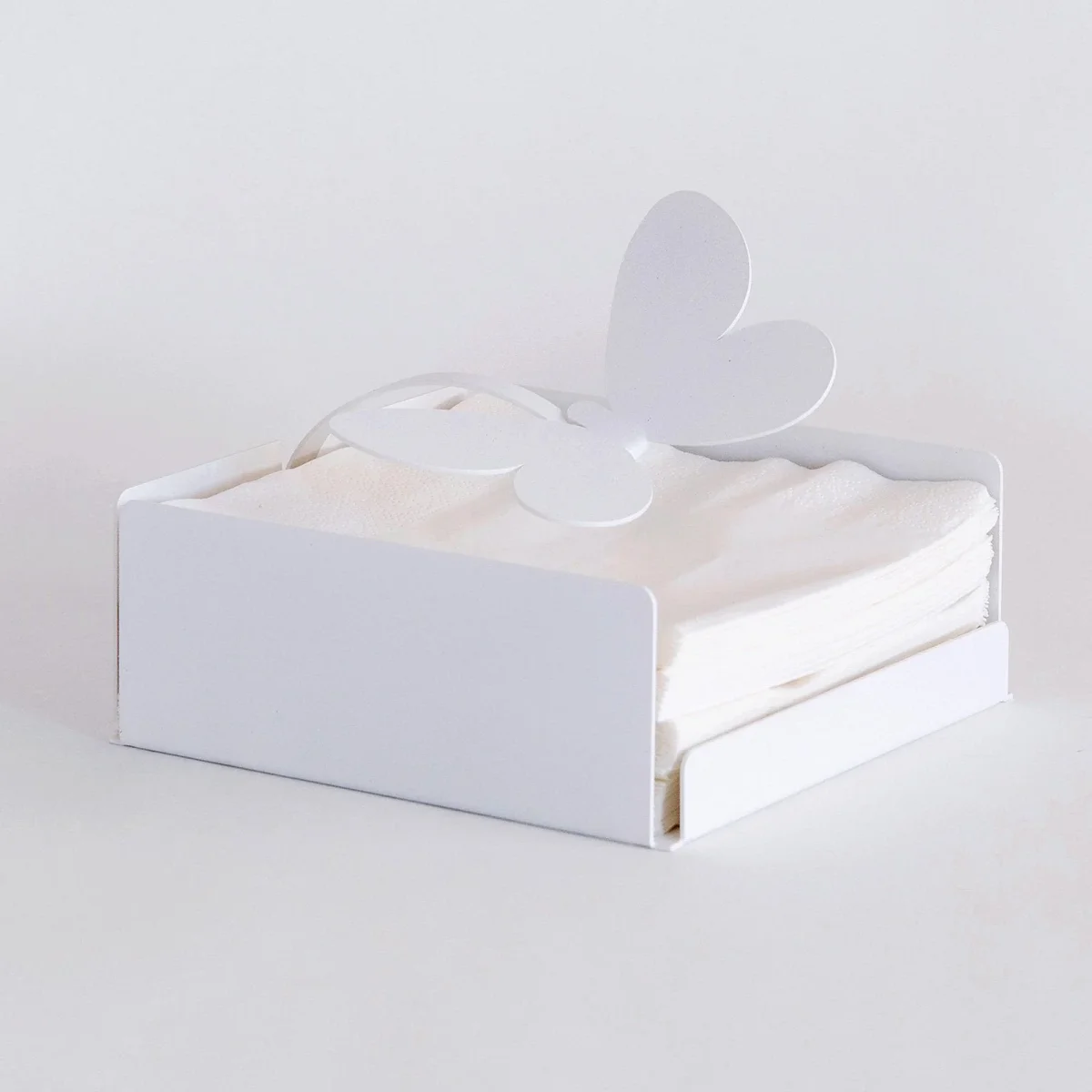 - Caratteristiche: Porta tovaglioli con fermatovaglioli a forma farfalla. Compatibile con i tovaglioli di formato 15×15 cm