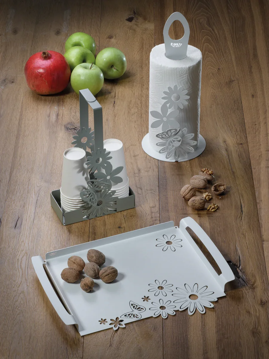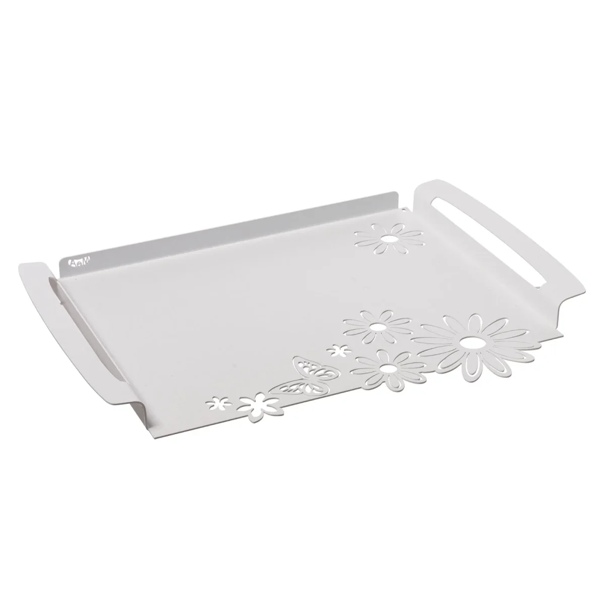 Il Vassoio Moderno Margherite Grande di Arti & Mestieri è un autentico prodotto 100% Made in Italy. Realizzato con ferro di qualità, questo vassoio ha forma rettangolare e presenta due manici sul lato corto.