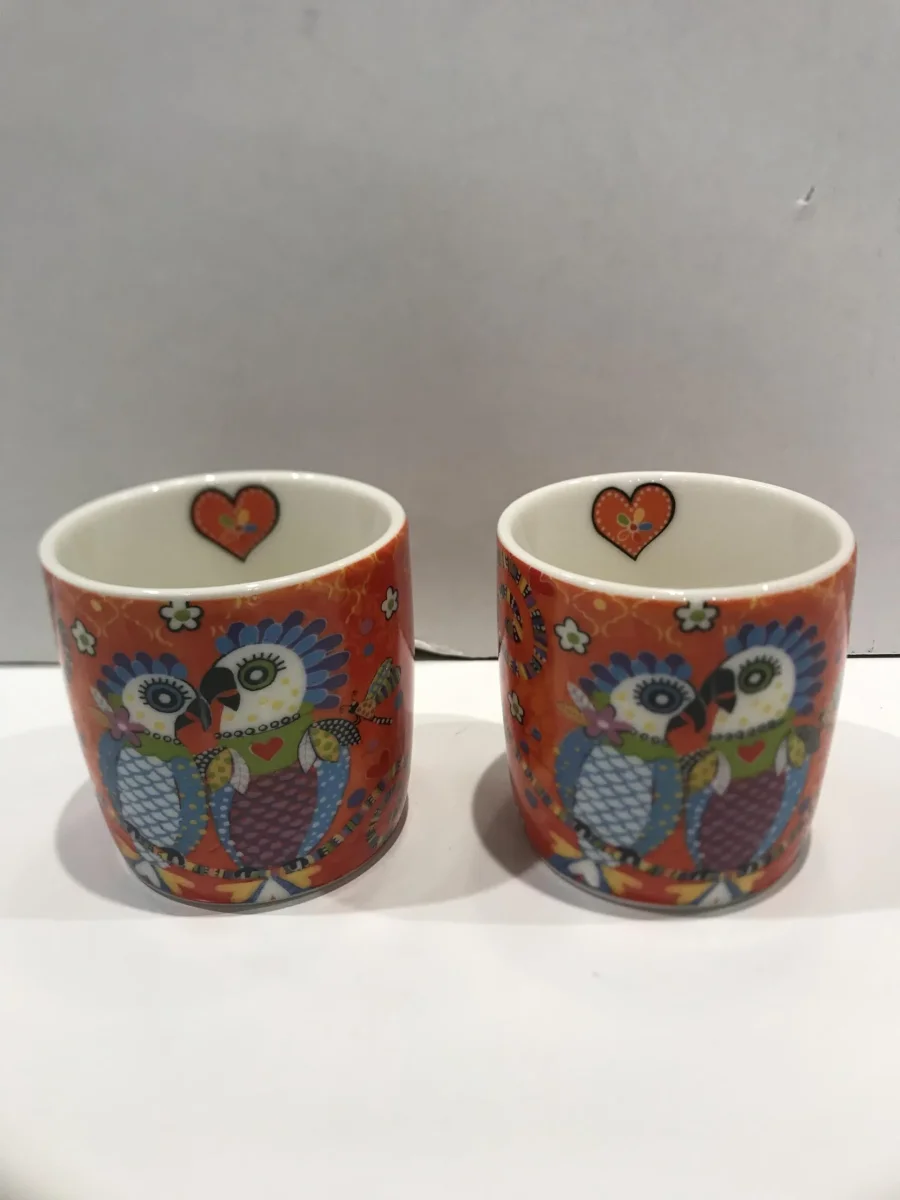 Dettagli: Set 2 Bicchierini da caffè’ Club Maxwell & Williams Coppia di tazzine in porcellana interamente decorate all’esterno con 2 pappagalli esotici e fondo rosso, all’interno di entrambi i bicchierini troviamo un cuore come decorazione. La collezione Love Heart nasce per farti sorridere! Arreda la tua cucina con il fascino giocoso del design di Donna Sharam. La collezione presenta tanti personaggi coloratissimi. Puoi divertirti a comporre il tuo servizio da caffè scegliendo i decori che ti piacciono di più. Caratteristiche: La capienza della tazza è di 100 ml Il materiale è porcellana, lavabile in lavastoviglie e utilizzabile in microonde Il set comprende due bicchierini da caffè.