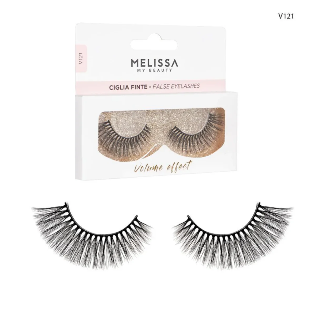 • 1)individuate le ciglia finte della misura desiderata e prelevatele delicatamente dalla striscia adesiva.