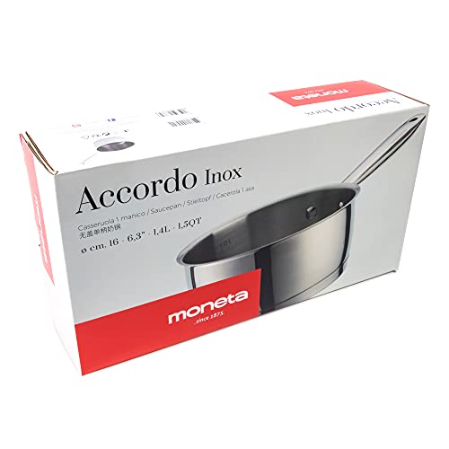 - Moneta Accordo Inox: corpo in acciaio inox spazzolato, con fondo incapsulato per una migliore diffusione del calore. Adatto a tutte le fonti di calore, compresa induzione