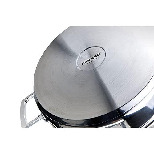 Dettagli: Moneta Accordo Inox: stile classico, ma dal carattere deciso, per una proposta di gamma superiore. Corpo in acciaio inox spazzolato, con fondo incapsulato (acciaio-alluminio-acciaio) per una cottura uniforme dei cibi e che favorisce una perfetta distribuzione del calore. Per ogni tipo di piano cottura, induzione compresa