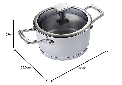 - Casseruola 2 manici 22 cm: Capacità: 4,5 litri. Altezza corpo: 125 mm. Diam. fondo per Induzione: 21,3 cm