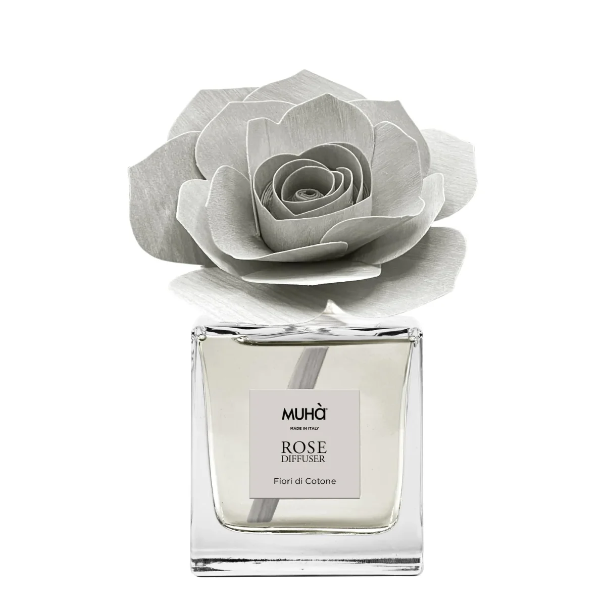 Muhà | Profumatore per ambienti Rosa Diffuser, Fragranza Fiori di Cotone, Diffusore Ambiente con Rosa in Legno di Betulla, Formato da 100 ml