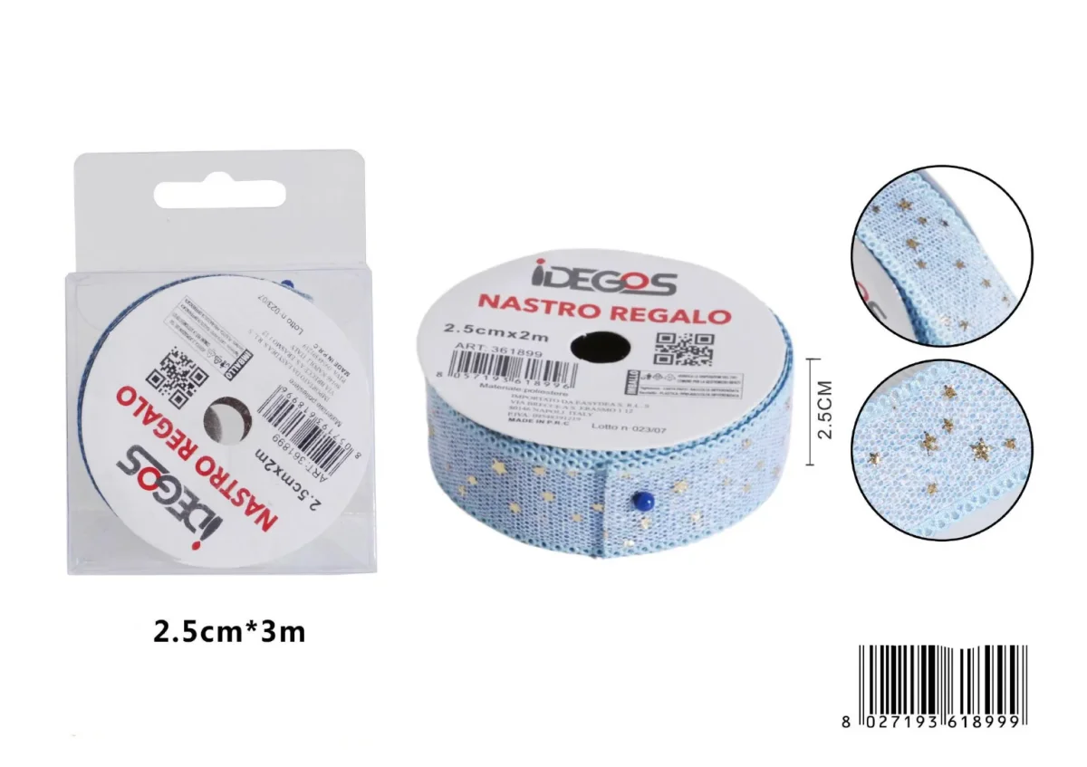 Recensisci per primo “Nastro Juta stellata azzurro 2.5cm”