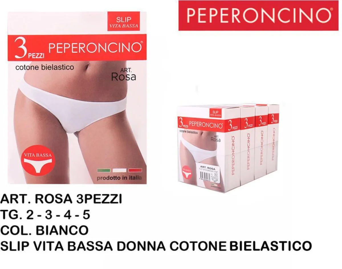 PEPERONCINO slip vita bassa cotone bianco Art.Rosa